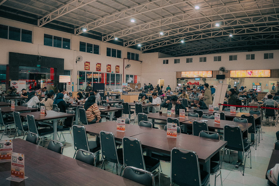 Di Resto Rosin Pemalang yang berlokasi di Rest Area KM 319B, seluruh penumpang mendapatkan fasilitas satu kali servis makan gratis. Tempat makan kelas Eksekutif dan Super Top dipisah. Aku turun dari dan menuju ke tempat khusus penumpang kelas Super Top. Makanan yang sudah dipilih melalui buku menu tadi akan ditaruh di sebuah rak. Sepertinya hanya makananku yang belum ada karena nasi goreng akan disajikan selalu dalam keadaan panas.